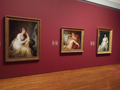 Picking up where I left off yesterday, I often stop by these three paintings, in the space beyond yesterday's gallery. You might have noticed the middle painting in one of yesterday's shots. Starting at left is Countess Tolstoya, a 1796 oil painting by Elizabeth Louise Vigee LeBrun, who had a big retrospective here at the Gallery back in 2016. Bacchus And Ariadne is an oil painting dating to around 1821, by the French artist Antoine-Jean Gros, depicting an element of Greek mythology and the Theseus story. On the right is Madame Ernestine Bioche de Misery, a portrait dating to 1807 by the artist Anne-Louis Girodet De Roucy-Trioson.