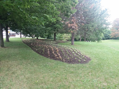 I got onto the bridge to take my photographs, and decided to continue walking along into Gatineau. At this end of the bridge on the Quebec side of the river is a flower bed I featured during the Tulip Festival. New flowers were growing.
