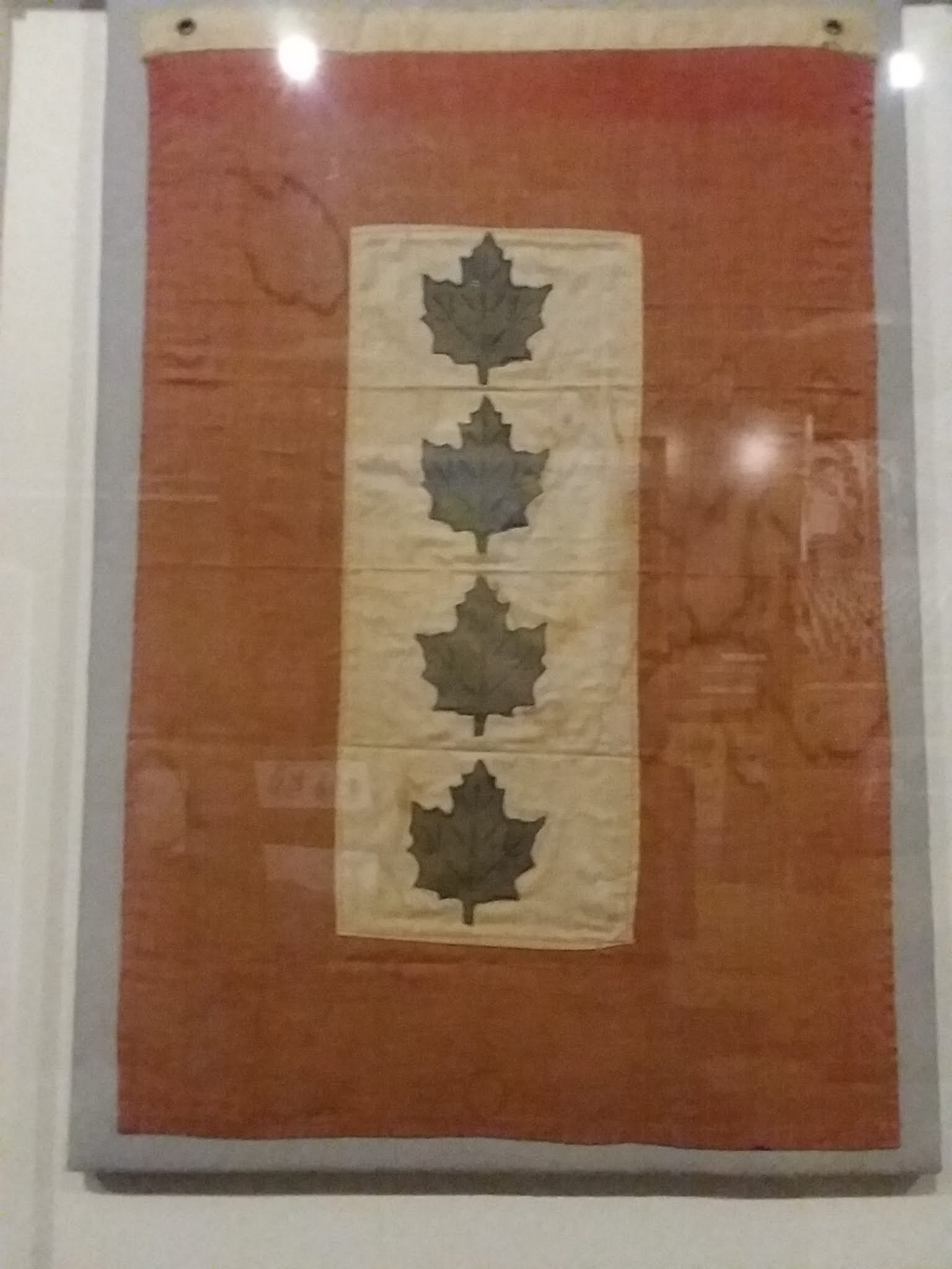 Something of great poignancy: a service flag. The Adie family sent four of their sons to war, hence the four maple leaves. Only one survived to come home.