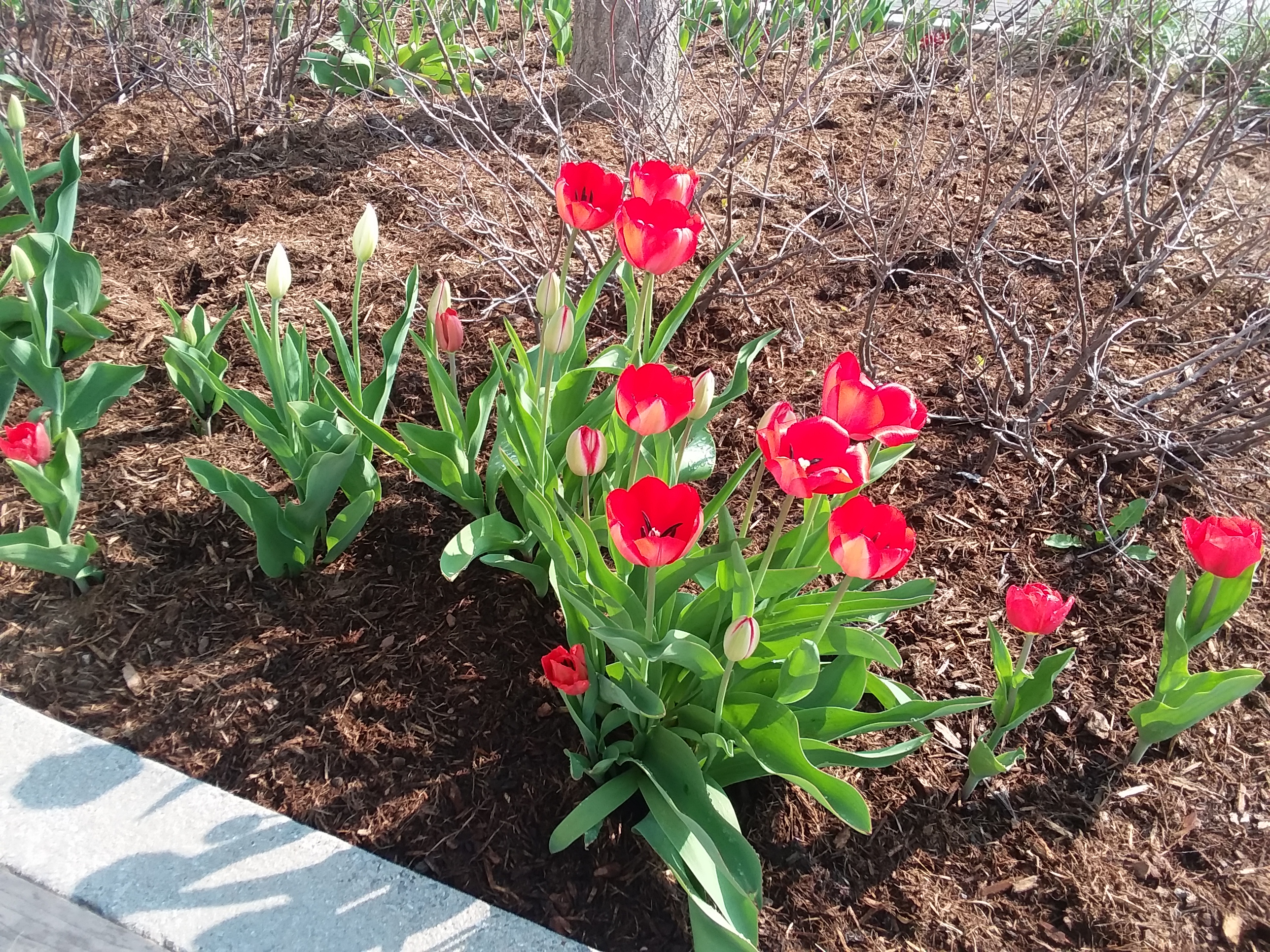 A few days back one morning I was at Lansdowne Park. Around the Aberdeen Pavilion, tulips can be found this time of year, some in the flowerbeds east of the building, others alongside the bushes that line the building on the north and south sides.