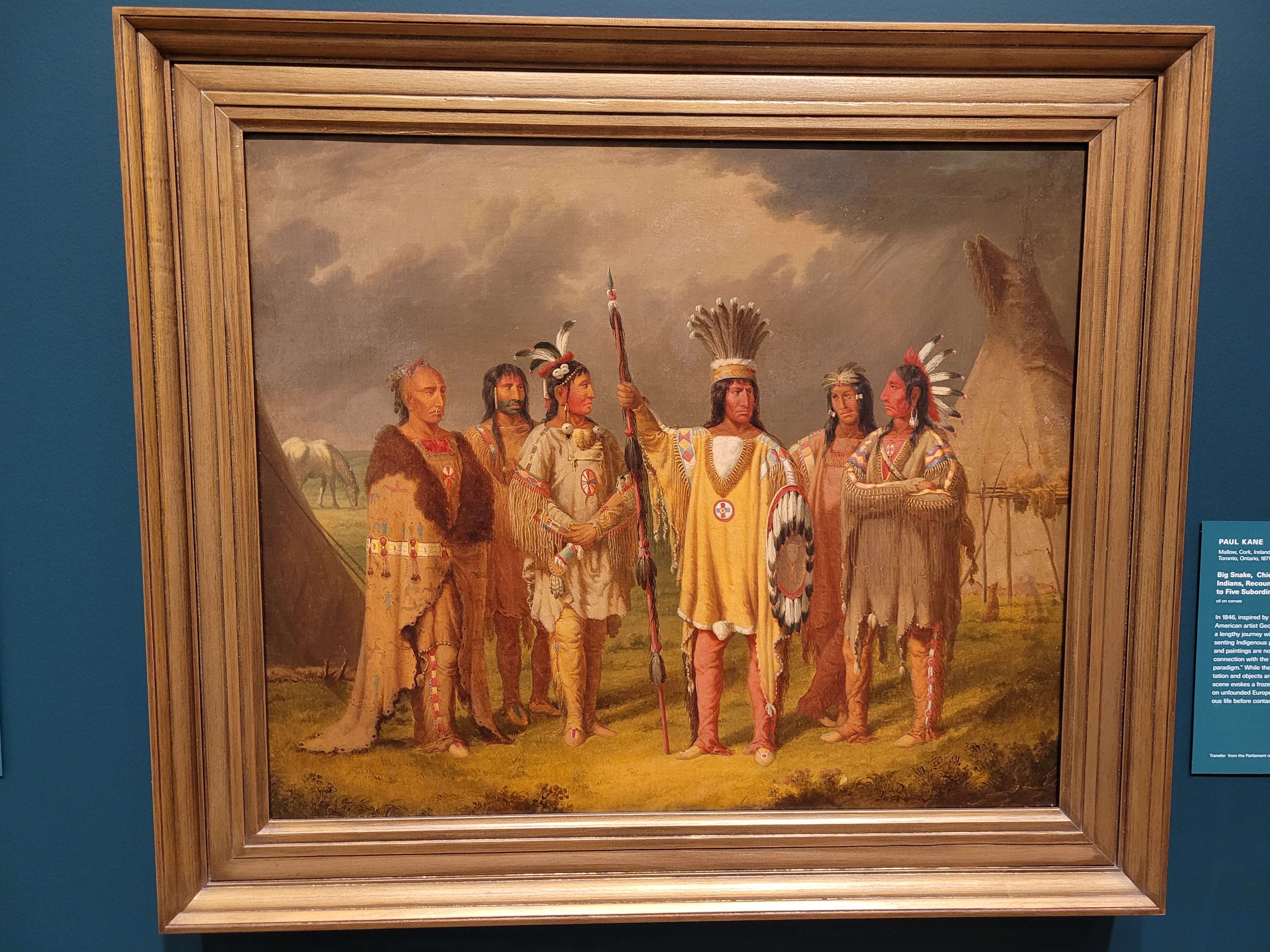 Big Snake, Chief Of The Blackfoot Indians, Recounting His War Exploits To Five Subordinate Chiefs is the title of this Kane painting done in those same years.