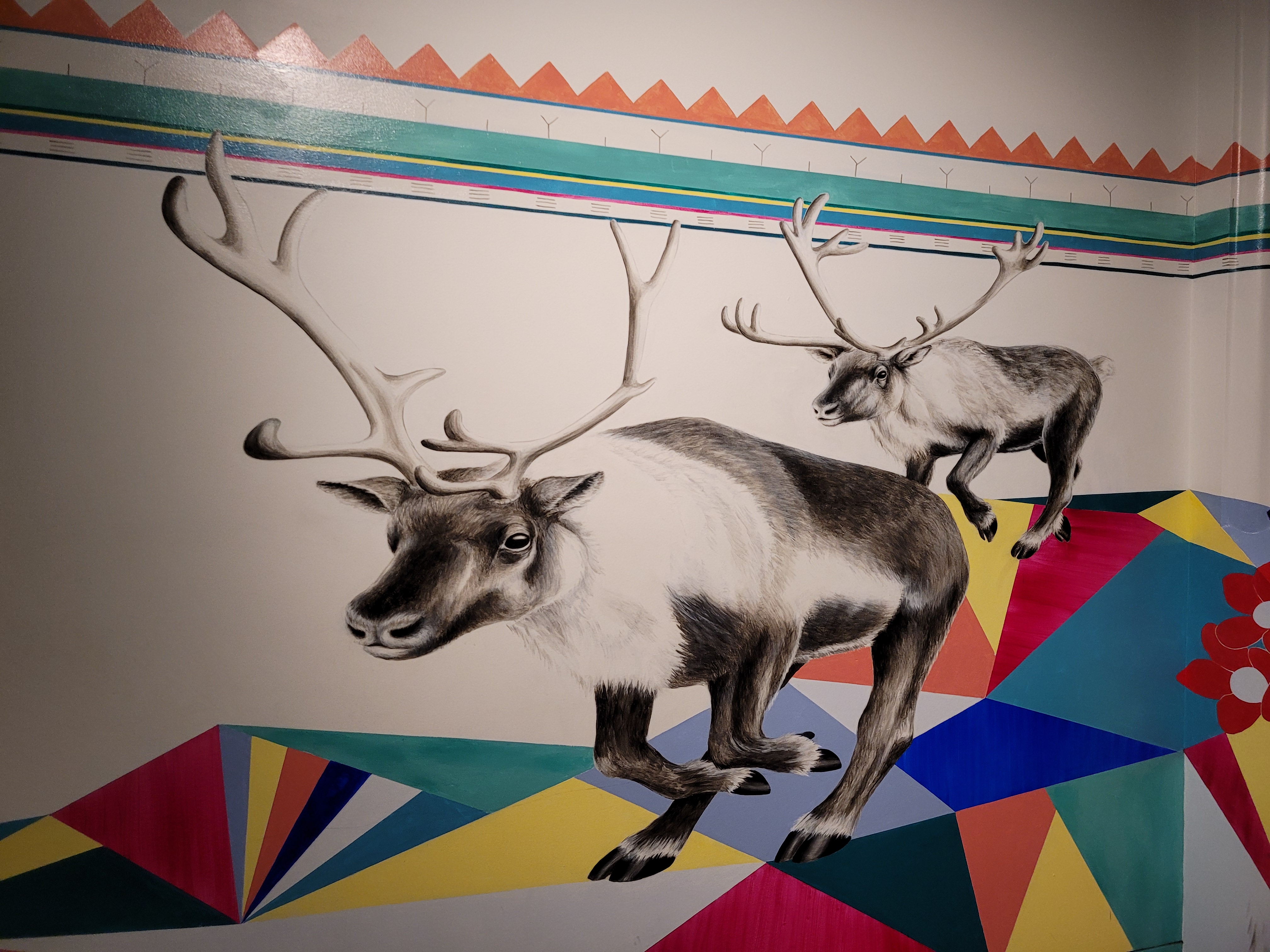 My path took me to the first of the permanent galleries in the Museum of Nature, the Arctic Gallery. This area looks at both nature and humanity in the far north, and the first thing one sees is this series of slabs of ice, with projected images on them. The slabs are replenished each night.