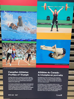 Each summer along the terrace that lies below the Chateau Laurier and leads to Major's Hill Park, a thematic display is put up by the government. This year being an Olympic year, the theme was Canadian athletes of the Olympics and Paralympics. This first panel shows the Canadians coming in during the 1976 Montreal Olympics.